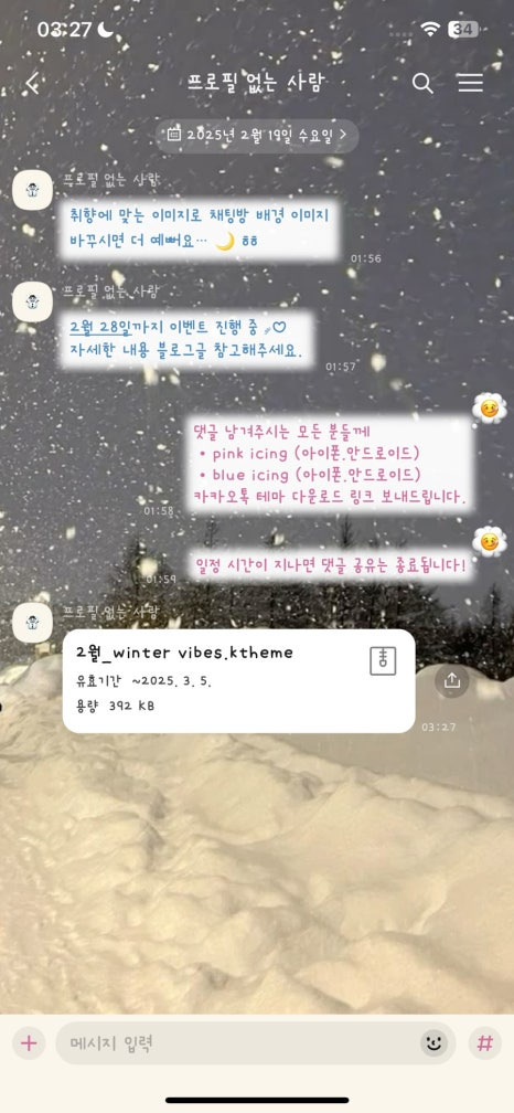 ** 앞으로 2주에 한 번씩 '보너스 카카오톡 테마'를 재공유 할 예정입니다.