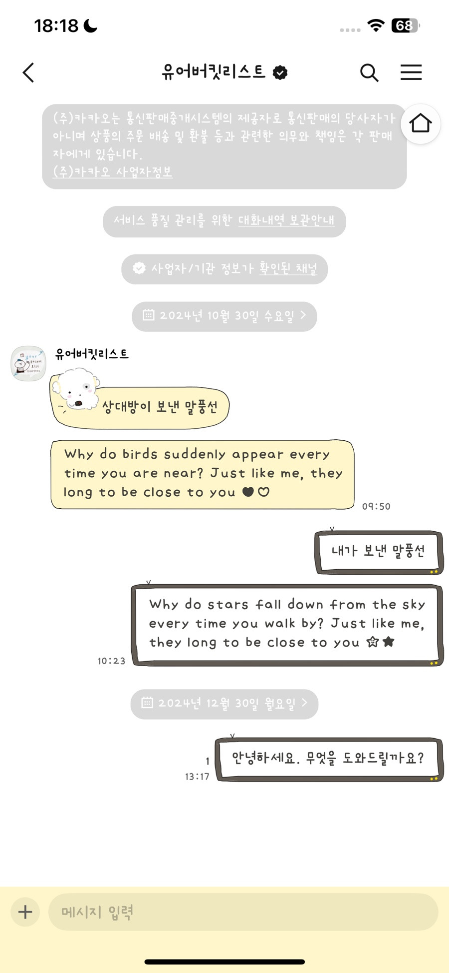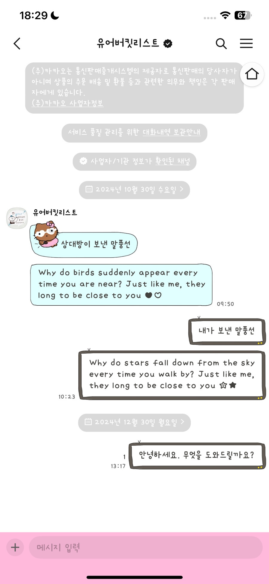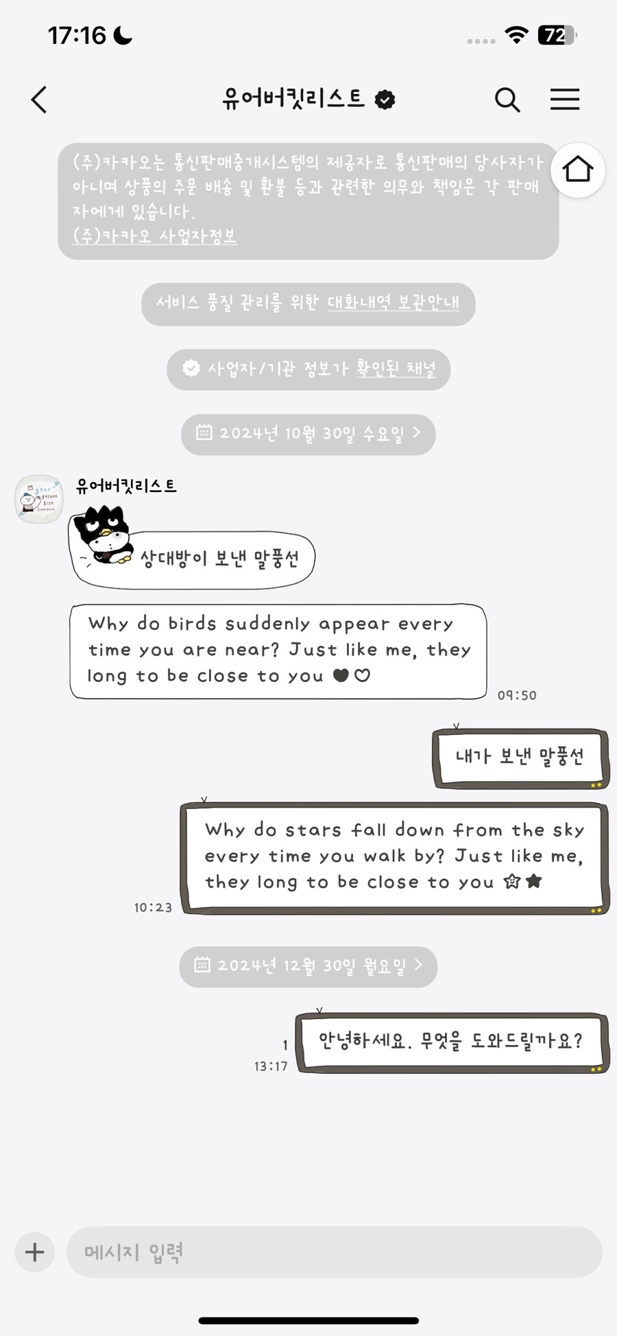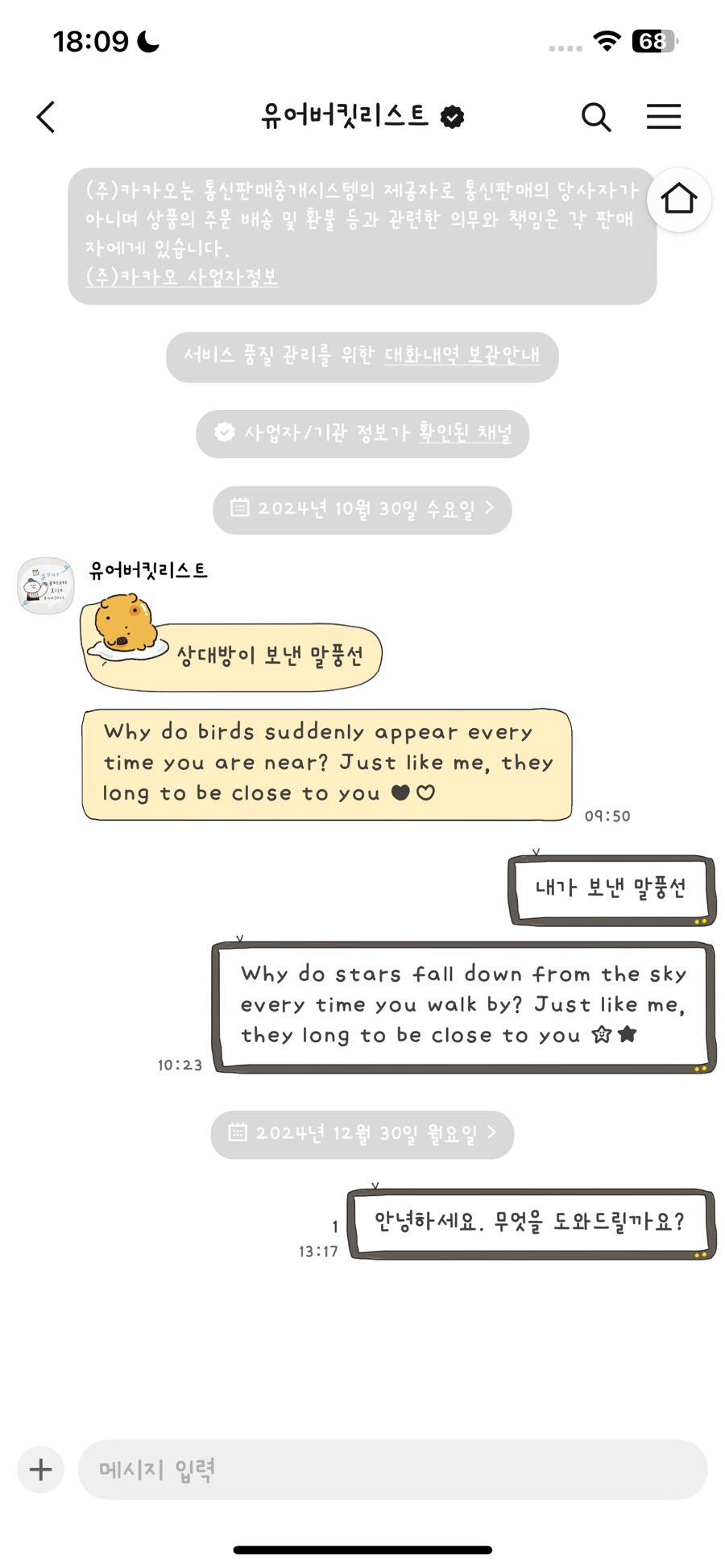 카톡테마 적용 [유어버킷리스트체] 구매하기