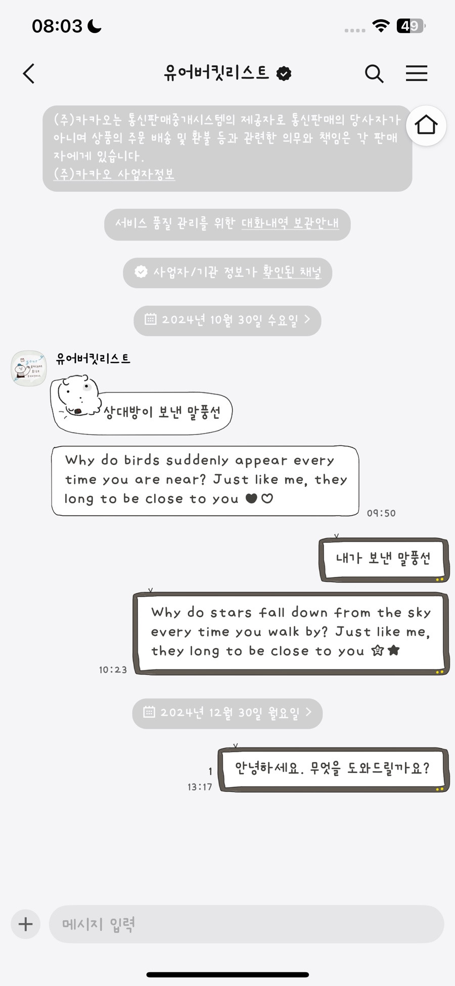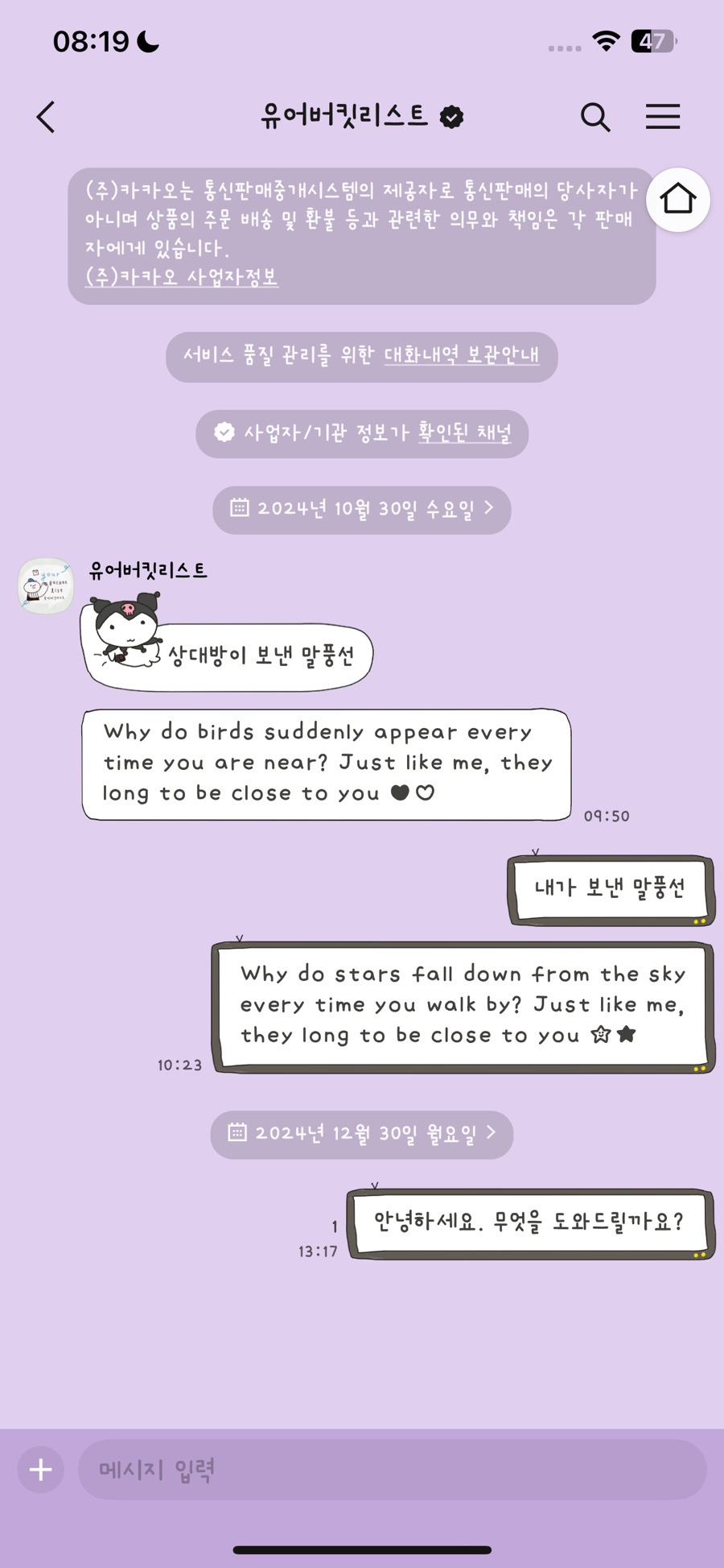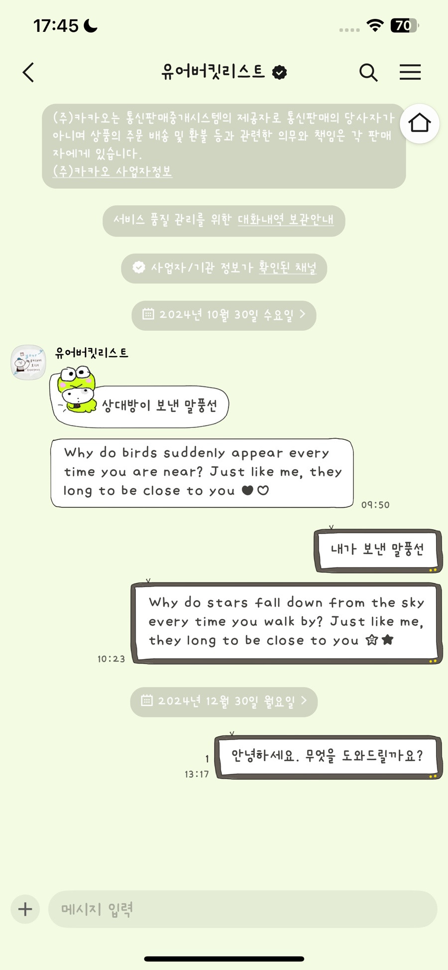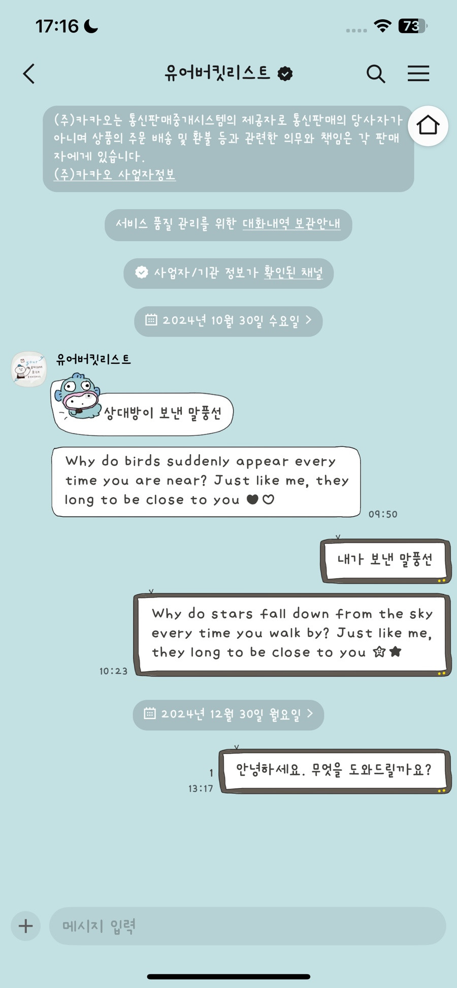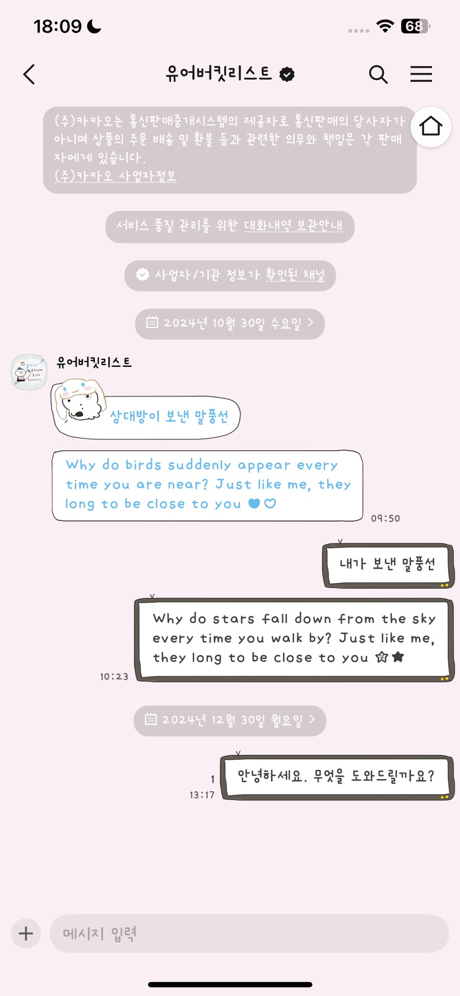 카톡테마 적용 [유어버킷리스트체] 구매하기