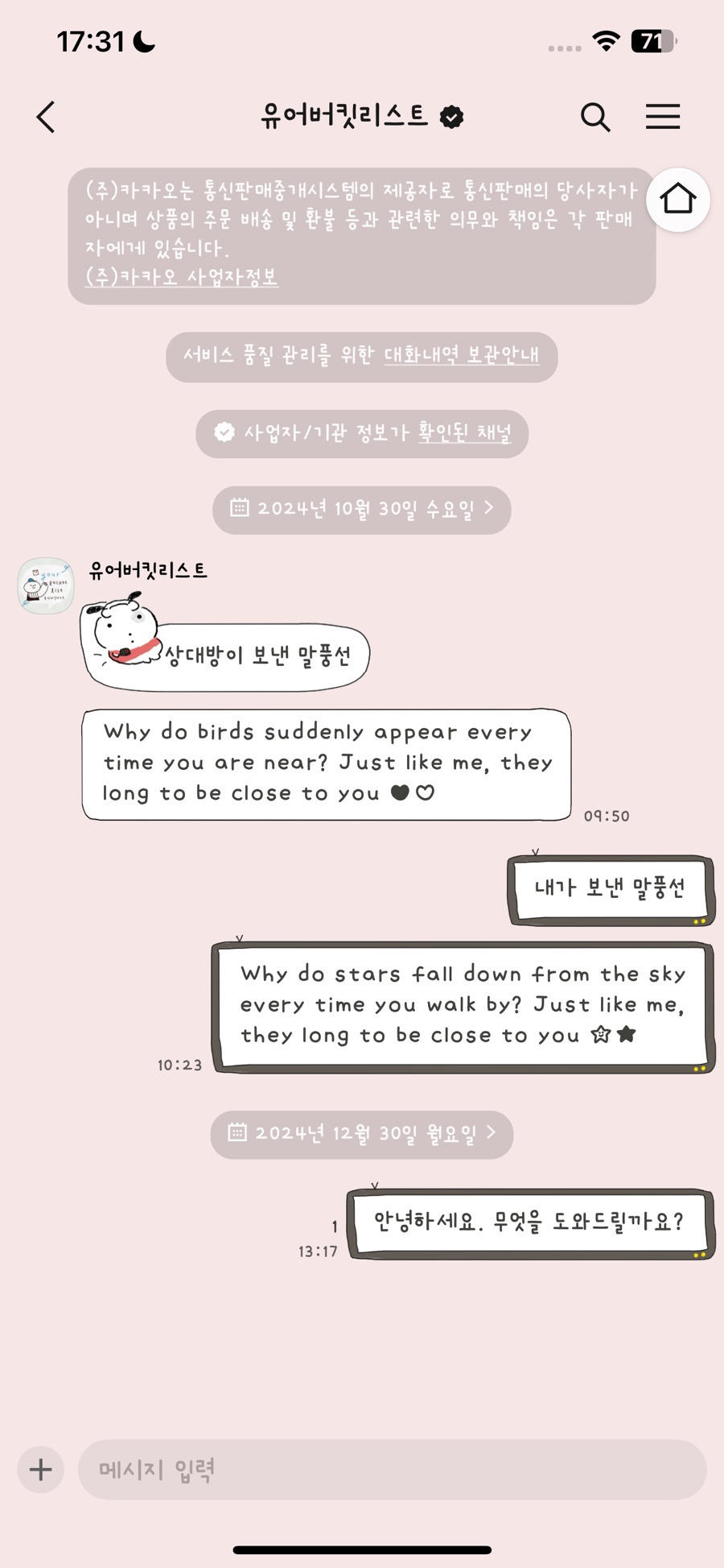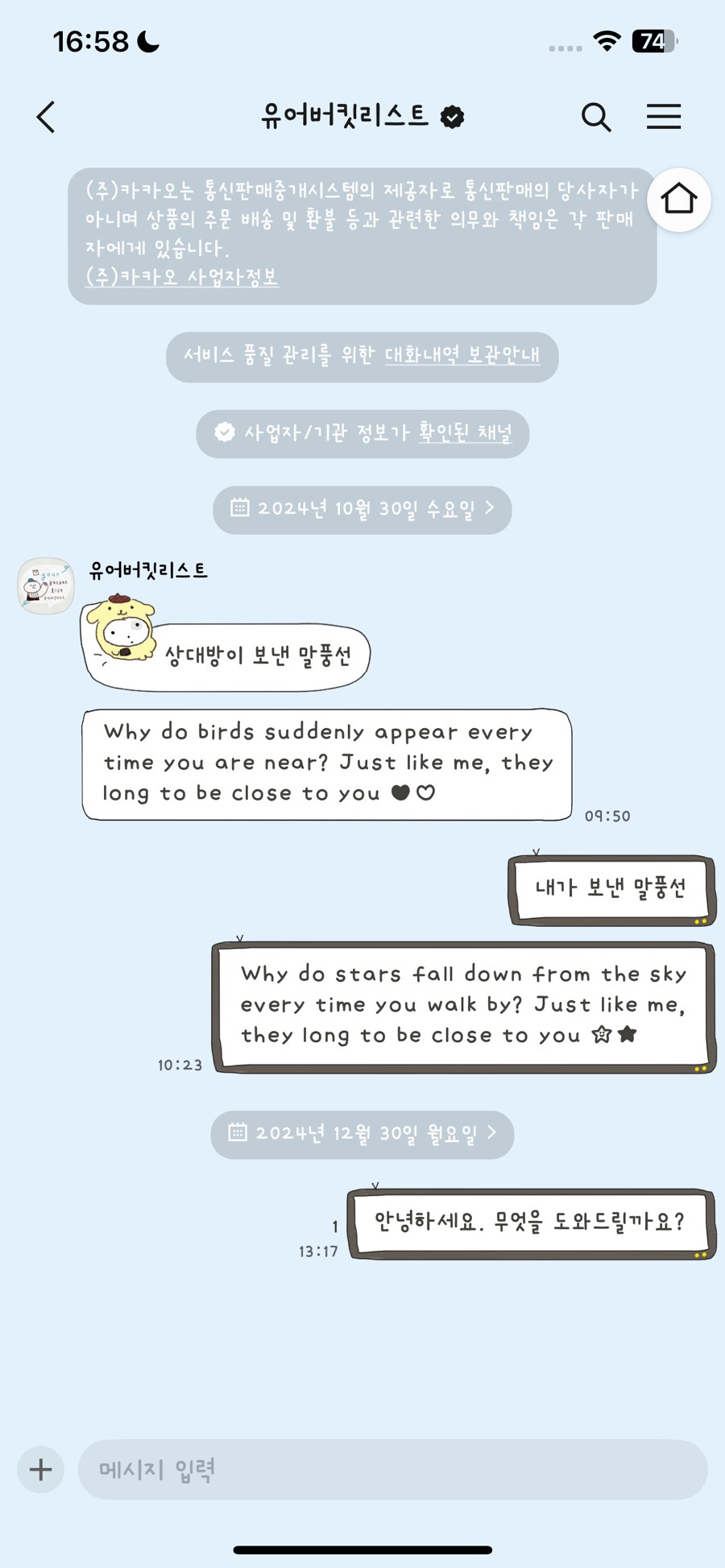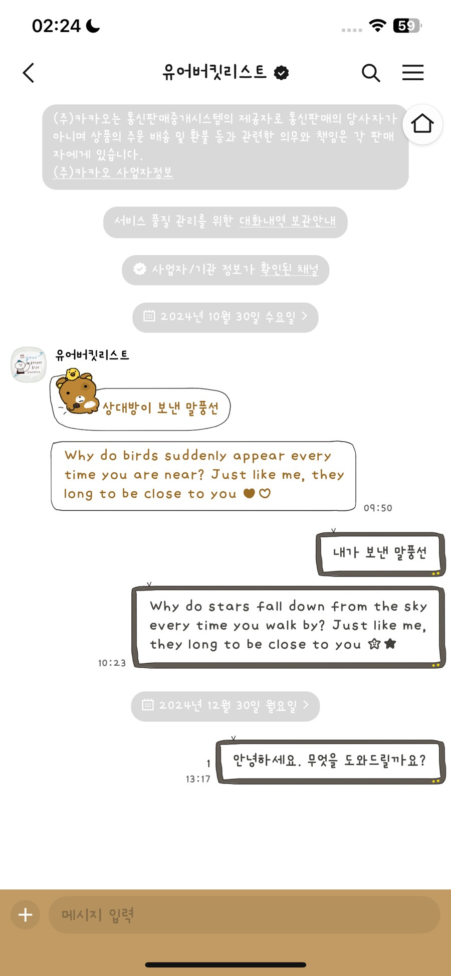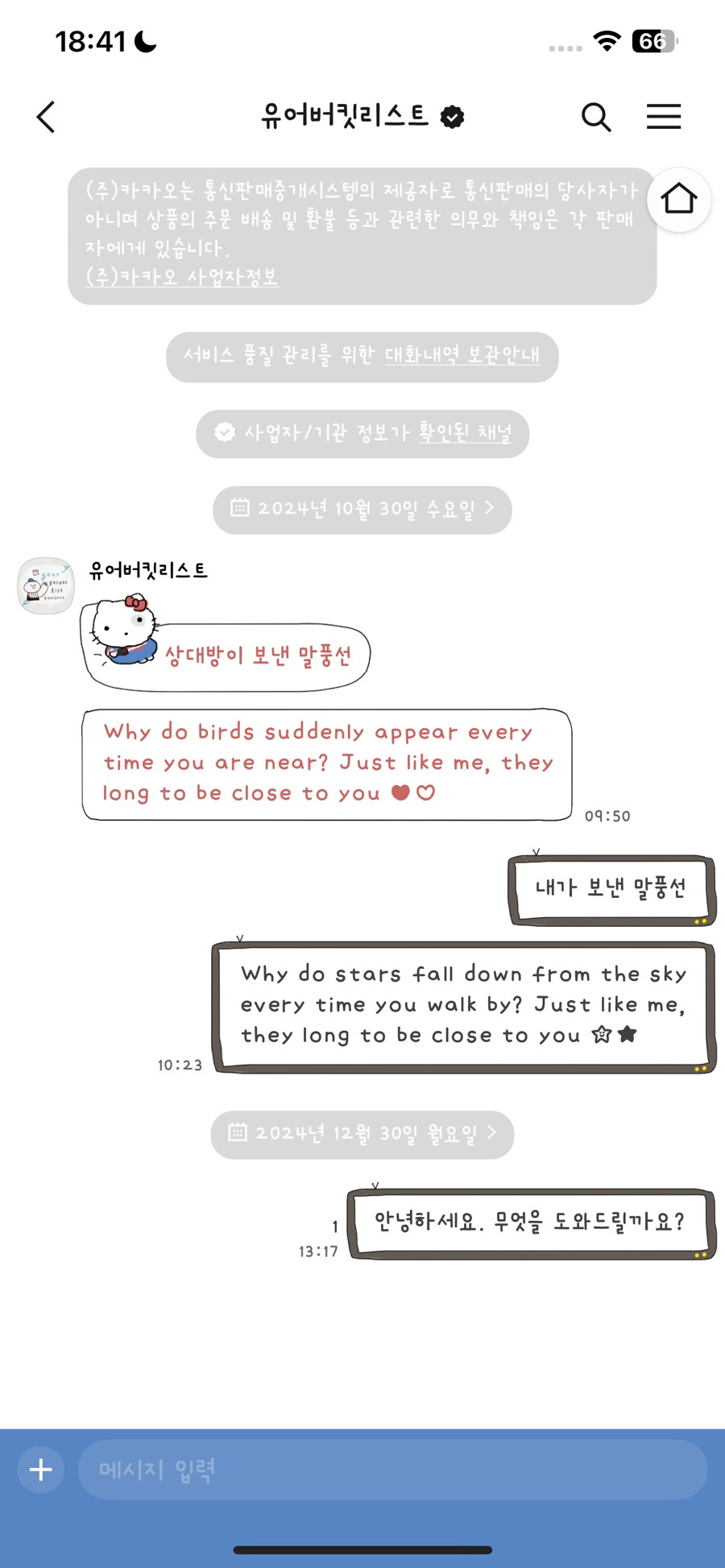 카톡테마 적용 [유어버킷리스트체] 구매하기