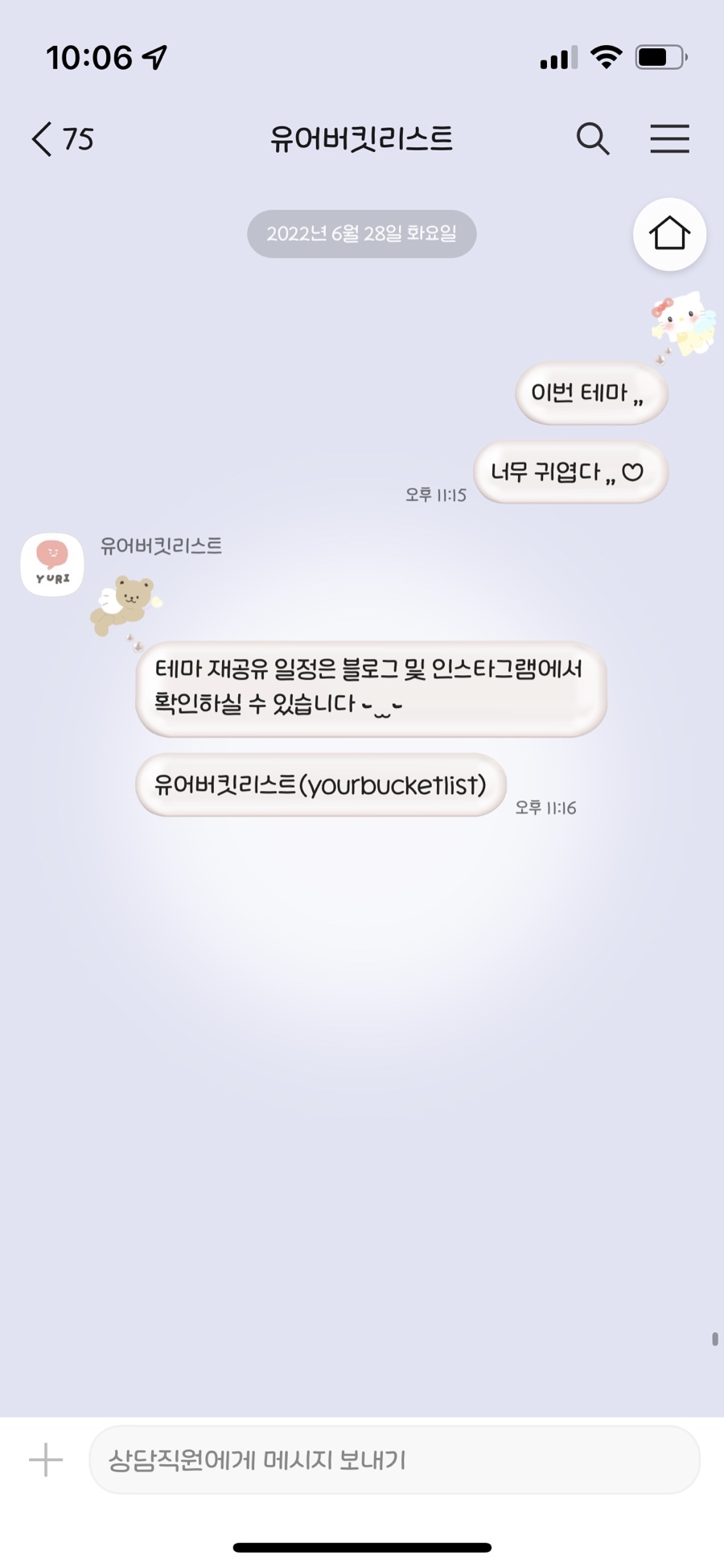 상대방 말풍선 (천사 곰돌이) + 나의 말풍선 (천사 키티)