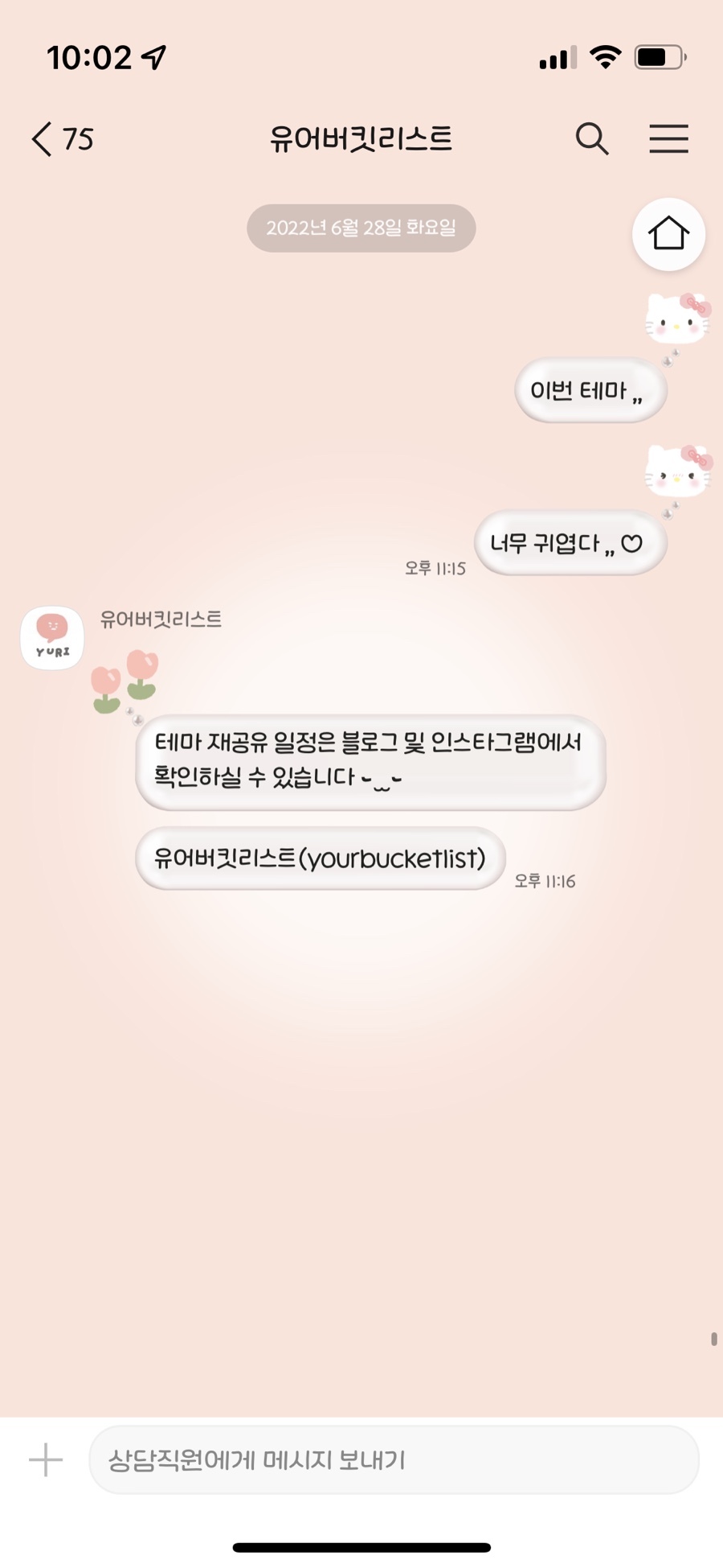 상대방 말풍선 (꽃) + 나의 말풍선 (키티 얼굴 1,2)