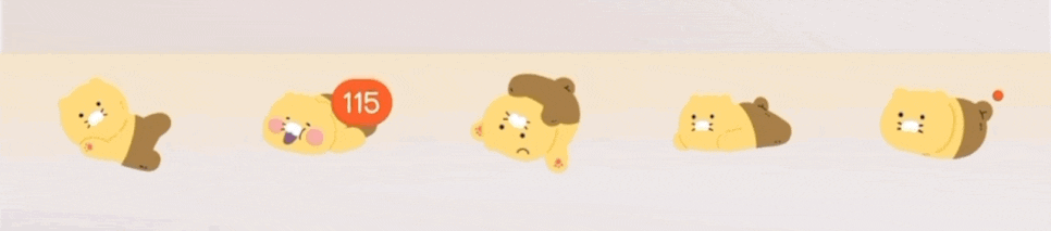 따뜻한 노란색 그라데이션 색상 테마 + 늘어나는 춘식이 말풍선