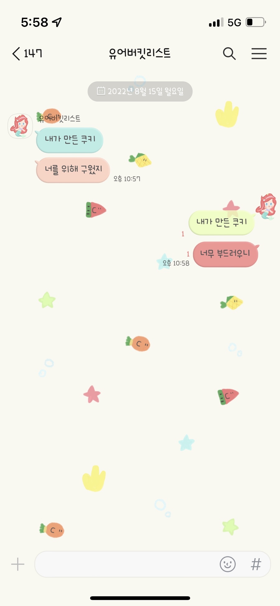 A. 나의 말풍선 인어공주 일러스트 있음 O