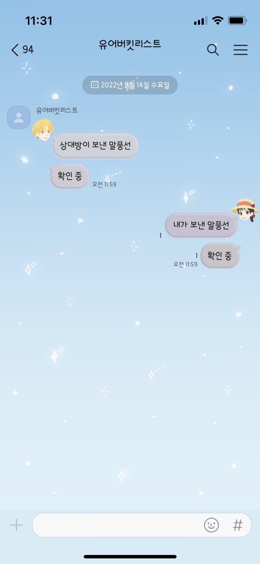 *인스타그램 1만 팔로우 이벤트 당첨되신 분(@yu_un_je)께서 원하셨던 카카오톡 테마입니다. ⸝⸝•。•⸝⸝