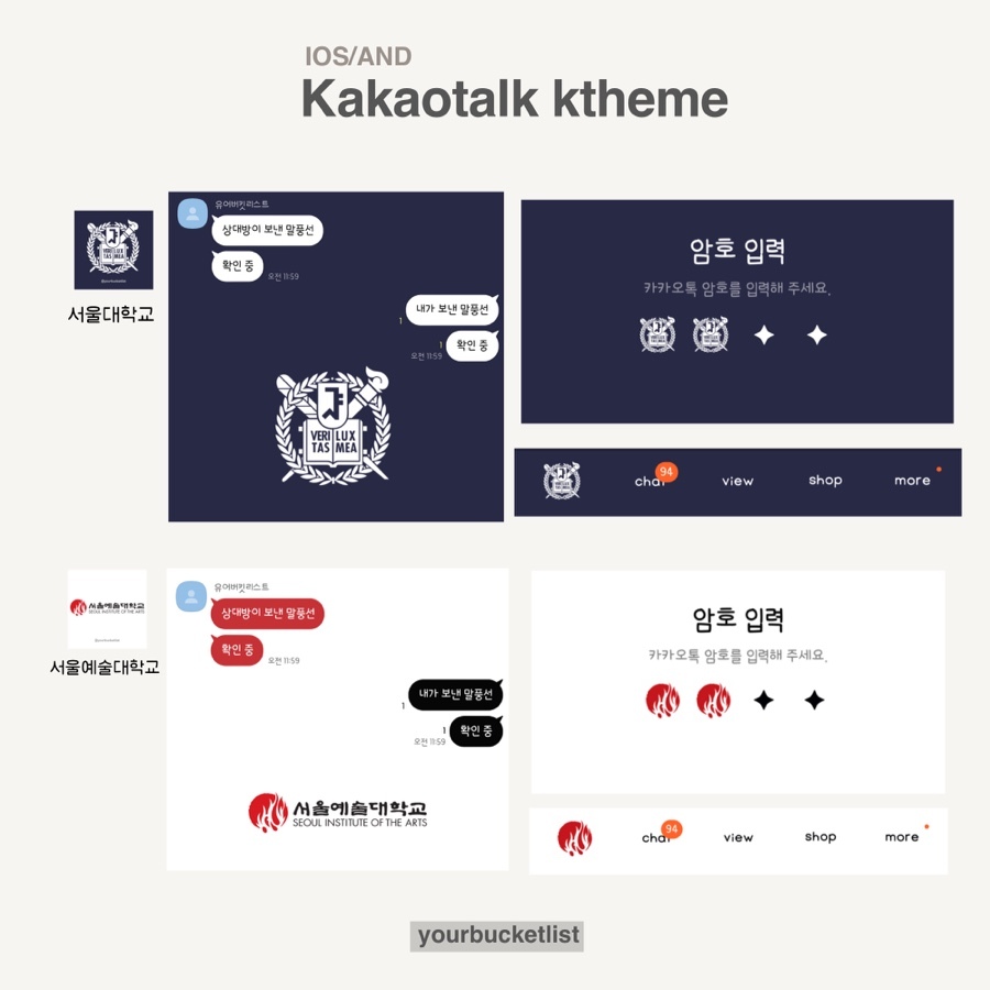 | [IOS/AND] 대학교(university)2탄 (12가지) 카카오톡 테마 (9) | 2022.10.25 |