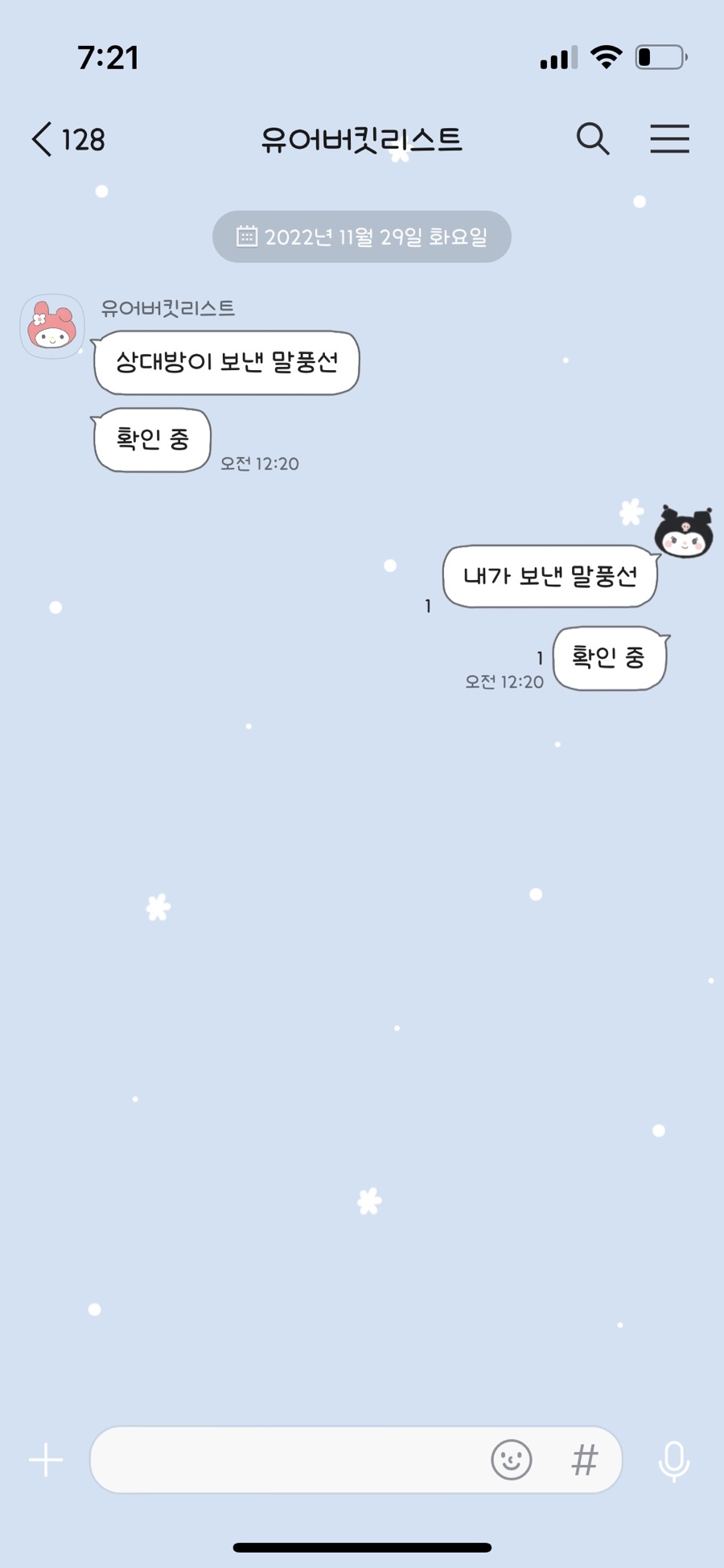 하단탭 누르면 산리오 눈덩이인 것처럼 설정해두었어요...