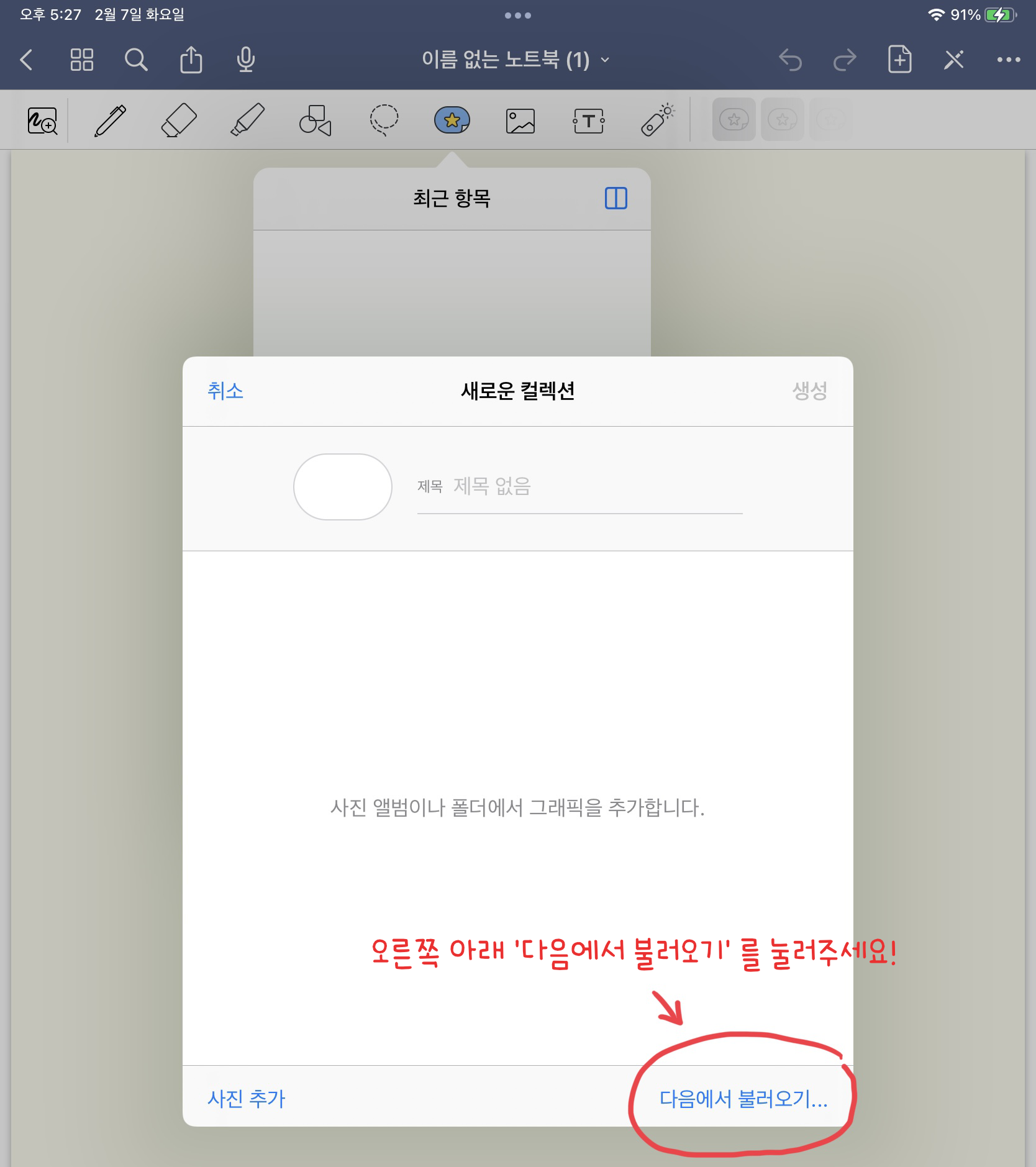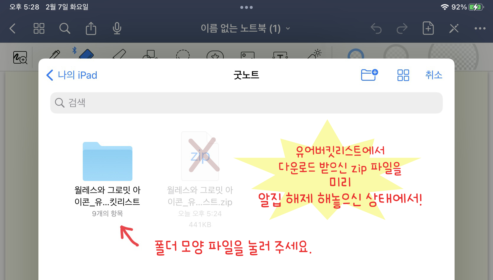 [알집] 다운로드 받은 후, 아이패드에서 굿노트 어플을 켜 주세요.