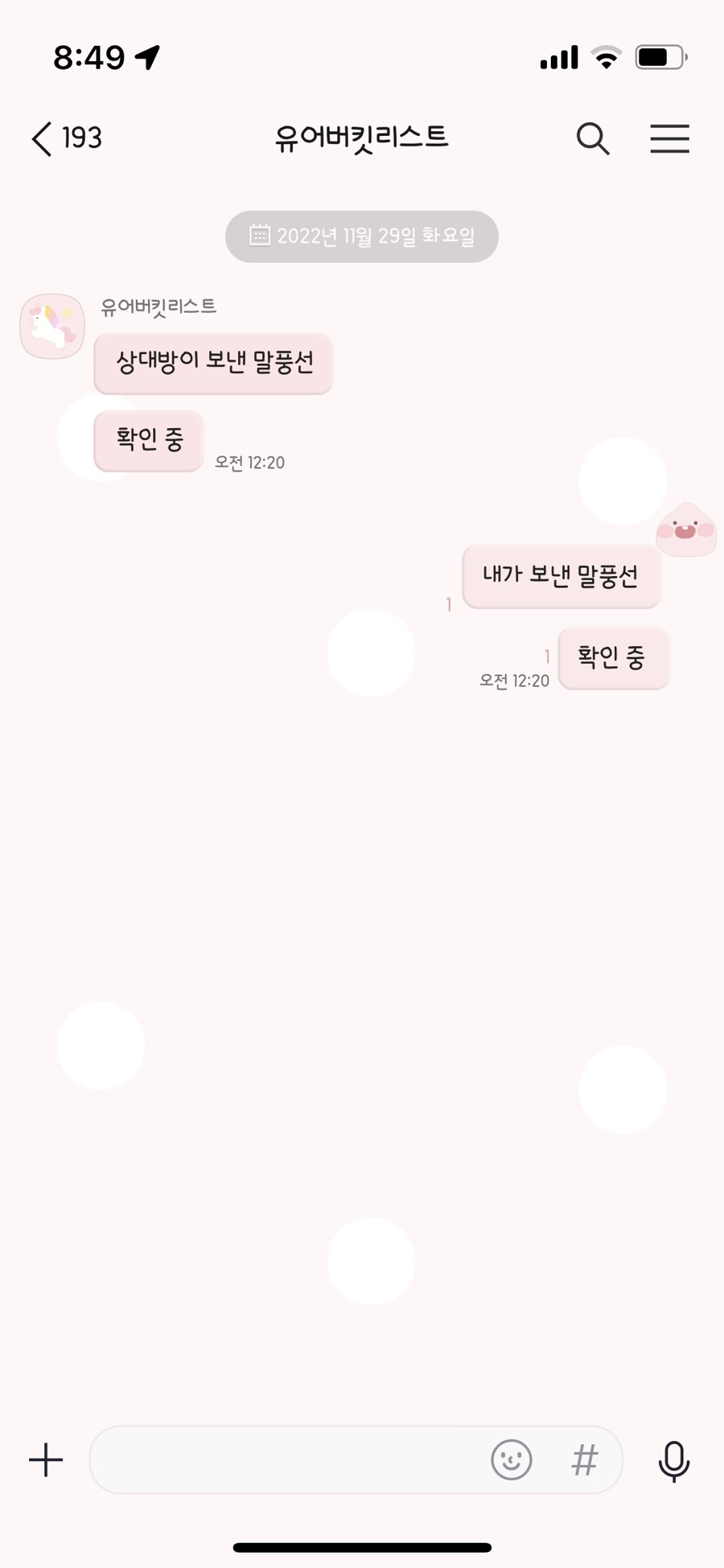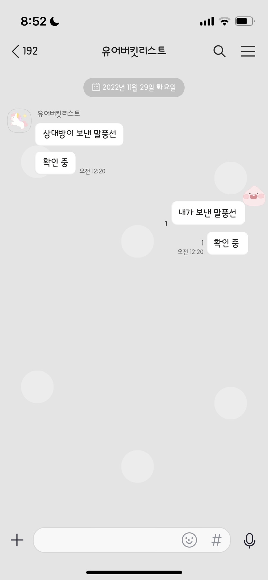 유니콘 기본 말풍선 + 웃고 있는 어피치 얼굴 말풍선