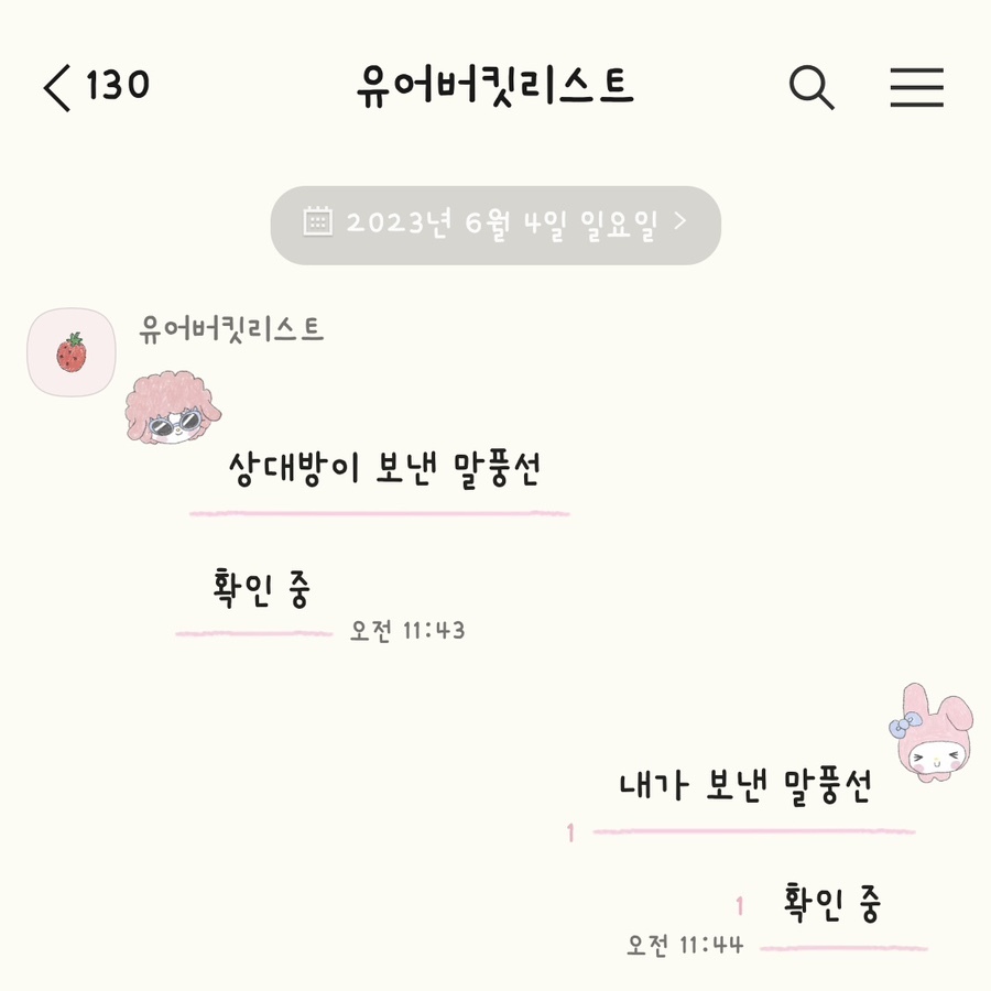 말풍선 일러스트가 없어서 대신 채팅배경에 일러스트 설정해두었어요.