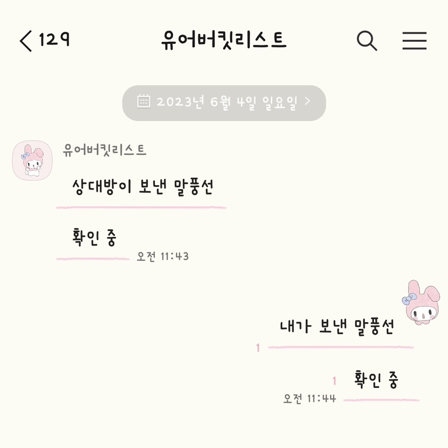 핑크색 배경 + 기본 프로필(마이멜로디)+ 말풍선 핑크색 밑줄만