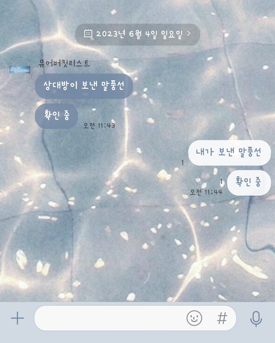 🗯️ 블루 계열의 물빛 배경이고 하단탭은 Slow dance 가사 한 소절을 넣었어요.