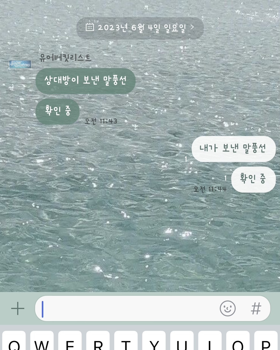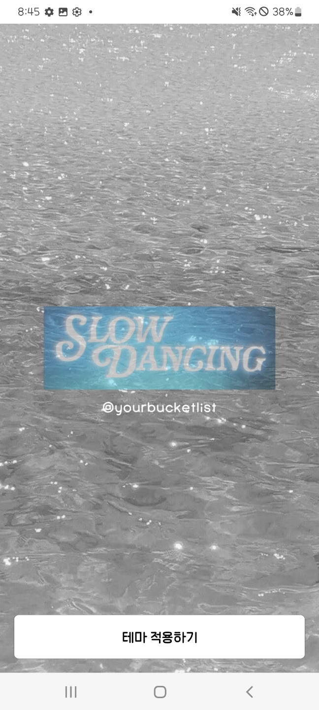 🗯️ 에메랄드 계열의 물빛 배경이고 하단탭은 Slow dance 가사 한 소절을 넣었어요.
