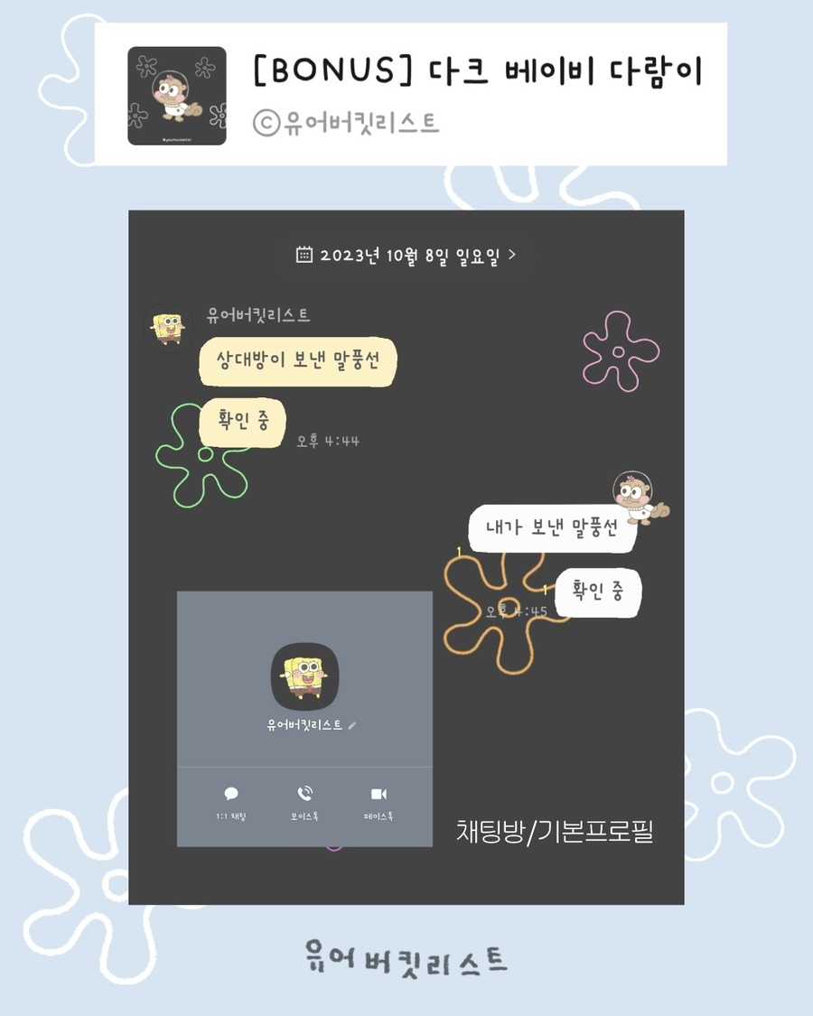 카톡 테마 만들면서 매번 캐릭터들한테 다시 반하는 거 같아요.