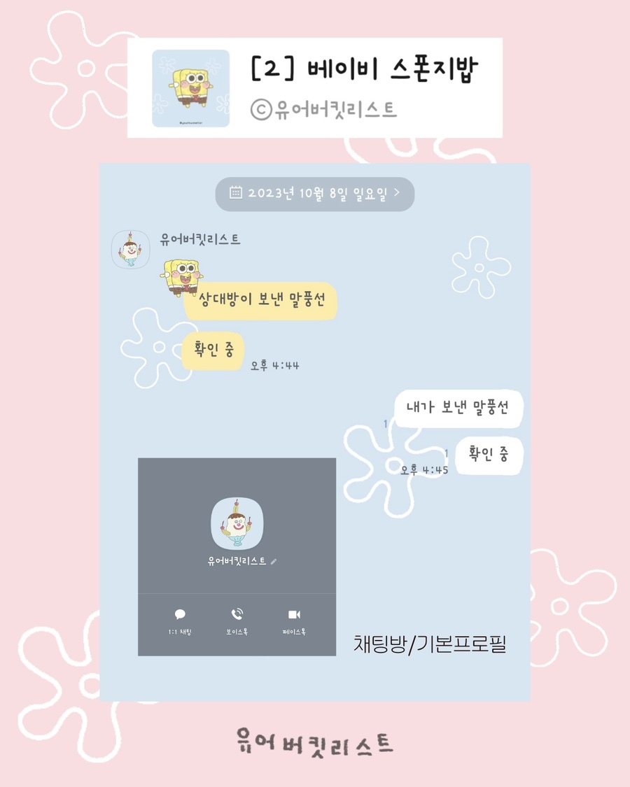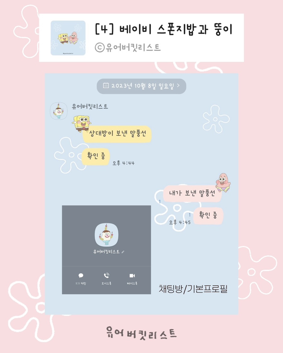 상대방 말풍선 색상은 분홍->연노랑색으로 수정되었습니다.