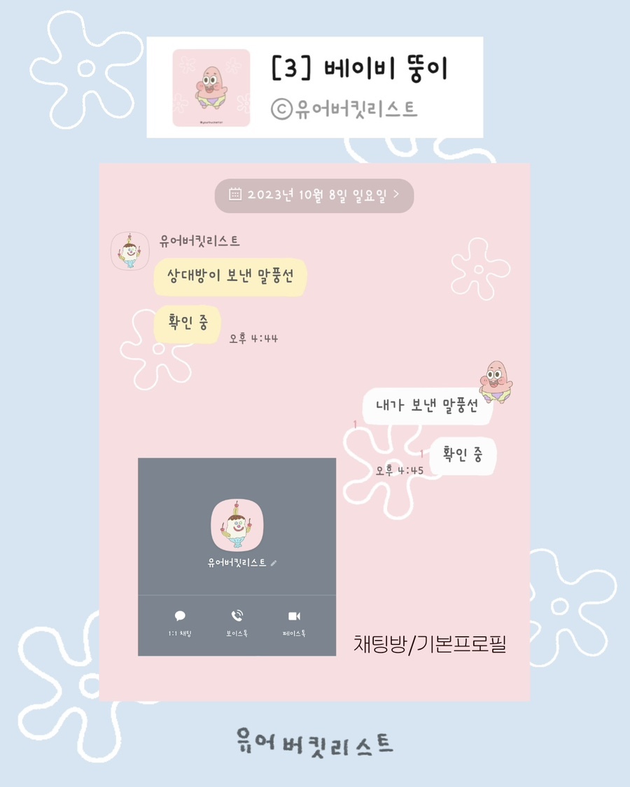 상대방 말풍선 색상은 분홍->연노랑색으로 수정되었습니다.