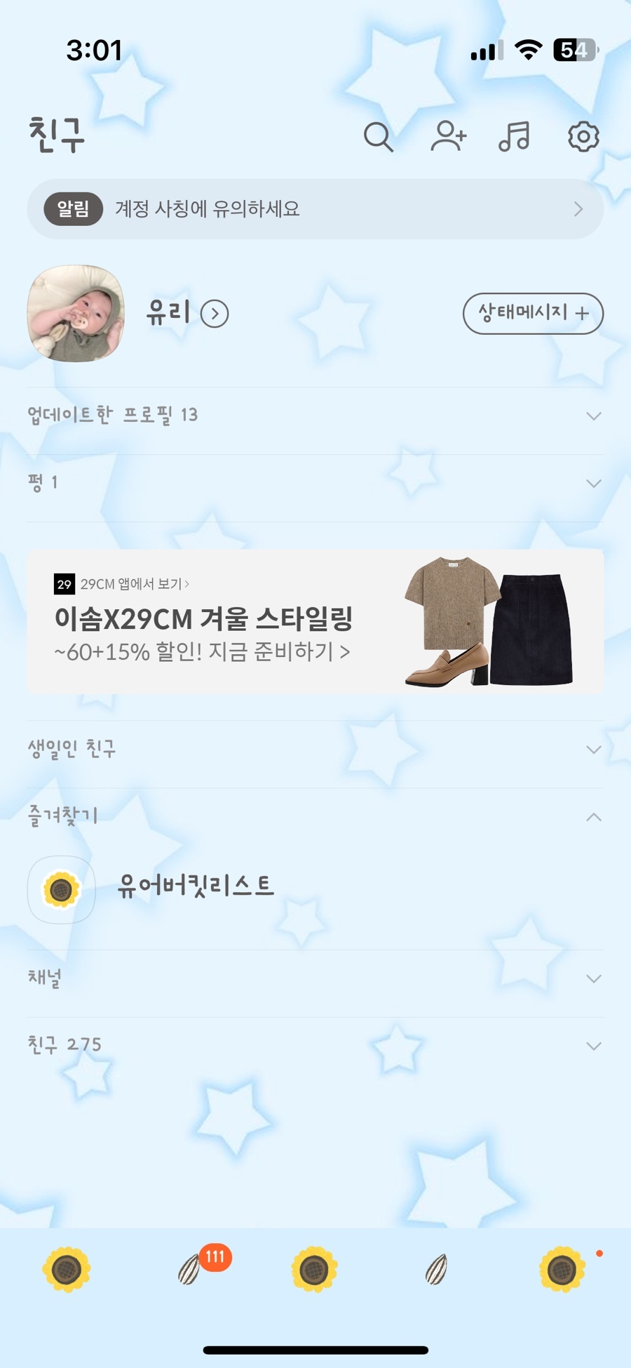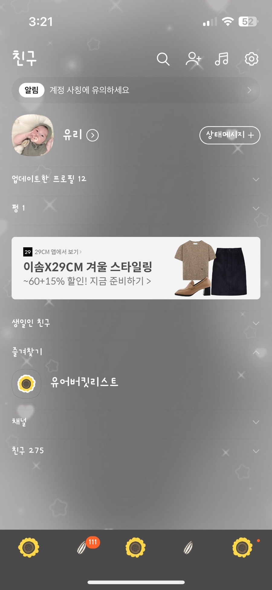 (+보너스 테마 하단탭에는 해바라기씨 없어요.