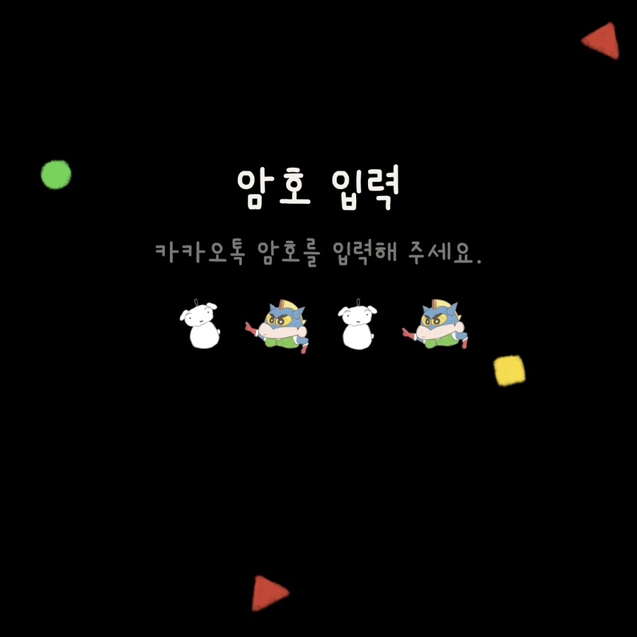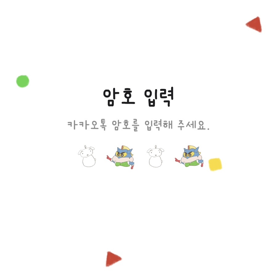 ② 암호입력 : 흰둥이 키링 + 말풍선에 들어간 짱구 코스튬