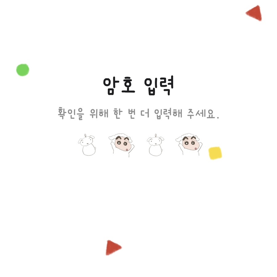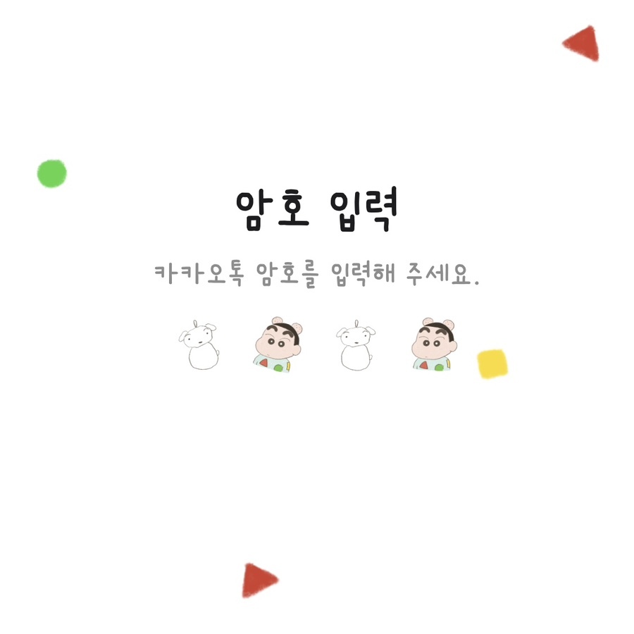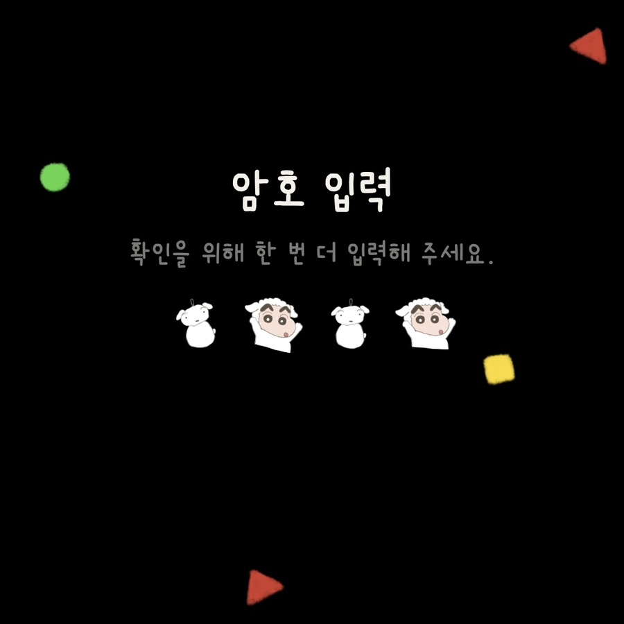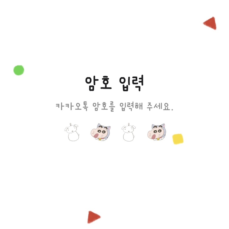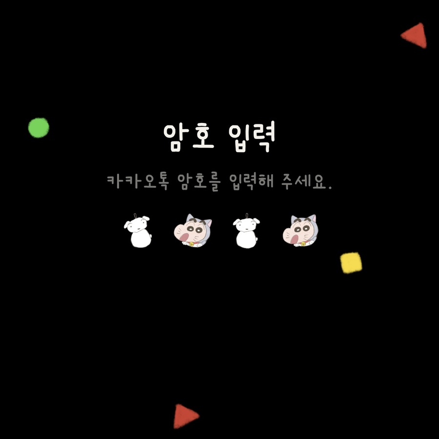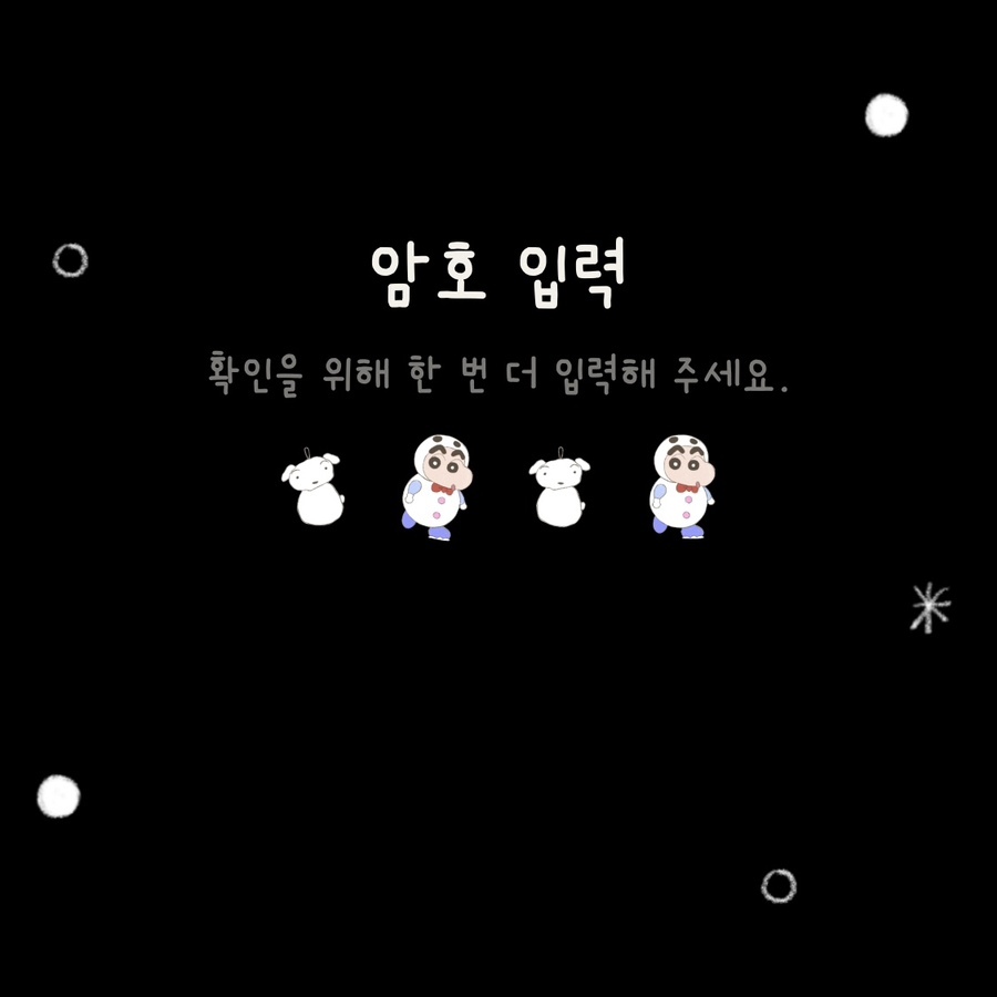 ② 암호입력 : 흰둥이 키링 + 말풍선에 들어간 짱구 코스튬