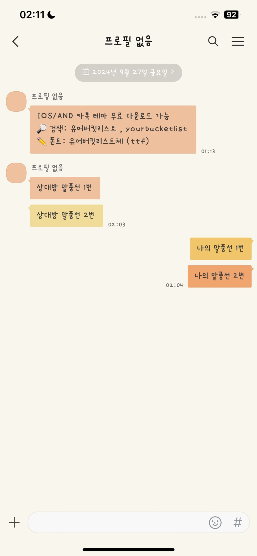 말풍선 컬러가 약간 다 달라요.
