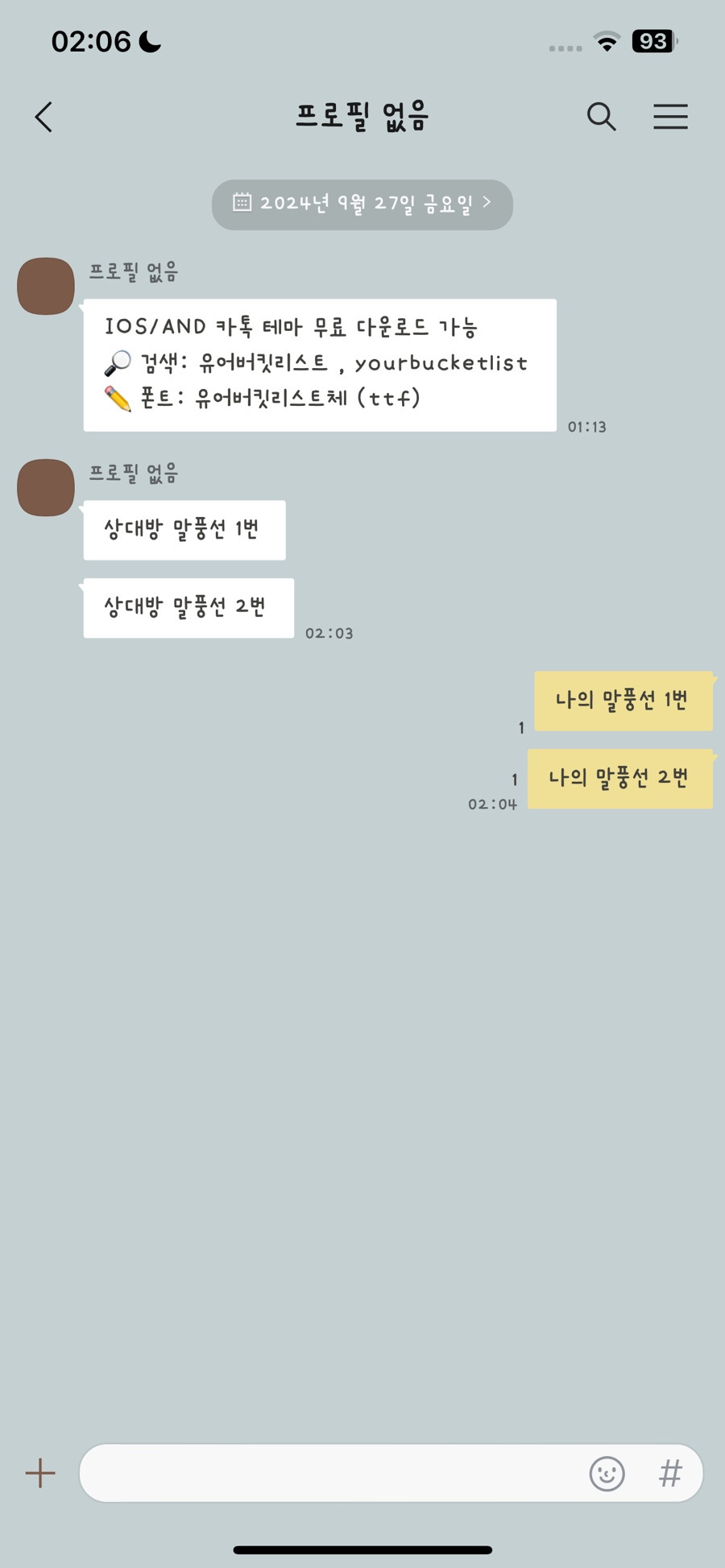 안녕하세요. 5개월만에 새로운 테마 공유합니다! 오랜만이라 TMI 남길게요. . . 저는 그동안 육아하면서 반려동물 테마 주문 제작, 협업 카톡 테마 제작들만 하다보니 무료로 공유할 테마 작업할 엄두가 나지 않았어요. T T ㅋㅋ 아기도 엄청 엄청 잘 크고 있고요. @with_youniverse 아기 인스타그램도 있어요! 맞팔 환영입니다 👶🏻 아 ! 그리고 제가 갤럭시로 폰을 바꿨는데요. 제가 만든 예전 카톡 테마들 안드로이드에 설치해보니 말풍선이 너무 커서 손이 잘 안 가더라고요. 말풍선 간격들도 세심하게 다 조절했으니 앞으로는 안드로이드 유저분들도 만족하실 거예요!