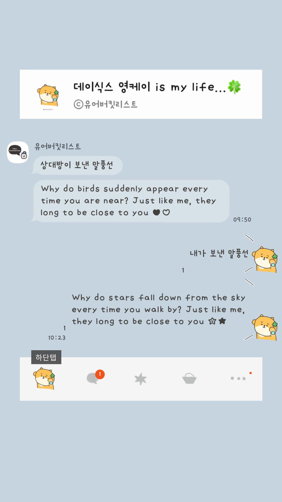 단체 채팅방에서 상대방 채팅이 빠르게 올라가면 읽기 불편하다고 투명 말풍선 변경을 요청하신 분들이 계셨어요. 나의 말풍선이 투명이어서 투명으로 맞춘 거였지만 단점 보완하기 위해 반투명이라도..... ㅠ.ㅠ