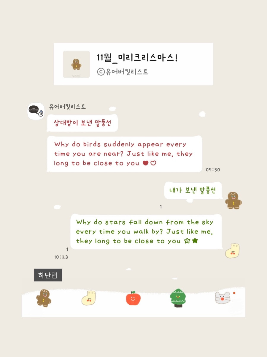 뒤뚱..........뒤뚱............ 산타 펭이 선물 나눠주러 출발했어요. 이 속도면 크리스마스에 선물 받을 수 있을지도...~? (아 ! 이번 테마 배경에 모두 눈이 내려서 말풍선에 눈 쌓인 것처럼 했어요)
