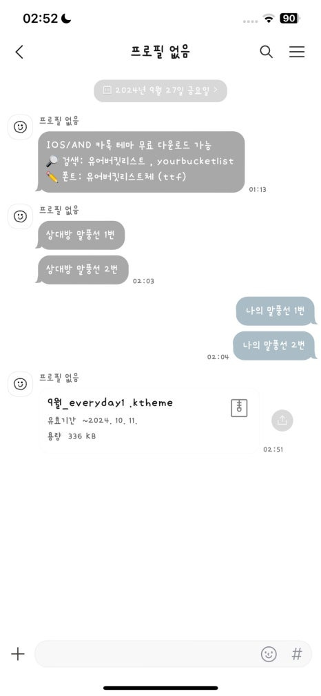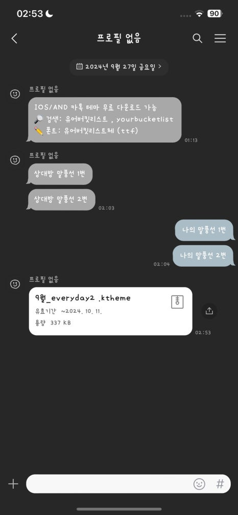 ** 앞으로 2주에 한 번씩 '보너스 카카오톡 테마'를 재공유 할 예정입니다.