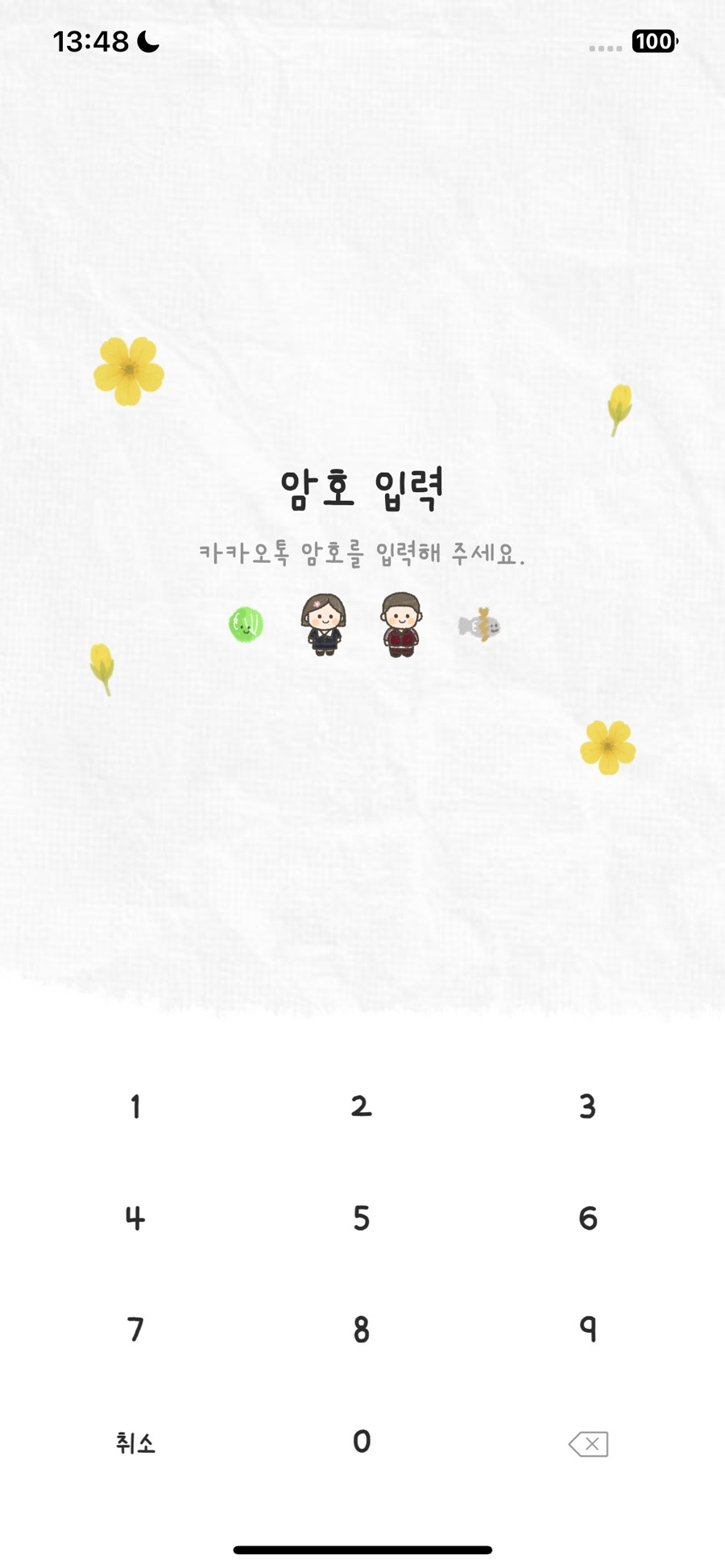 내가 보내는 말풍선 캐릭터에 따라 테마 이름이 다릅니다. 암호 입력에 양배추와 조구새끼 일러스트 넣었어요 ㅠㅠㅠㅜ기엽쬬 우엑ㅠ.ㅠ
