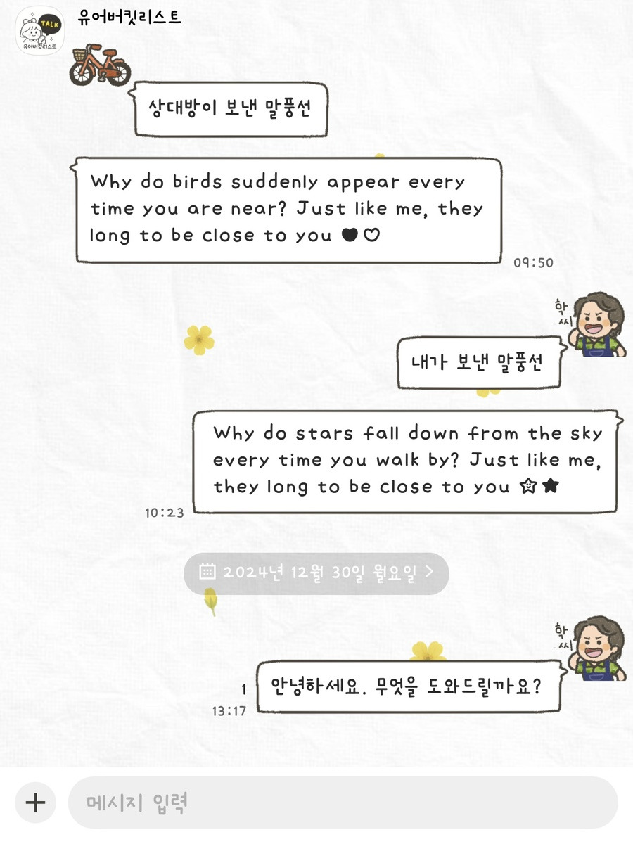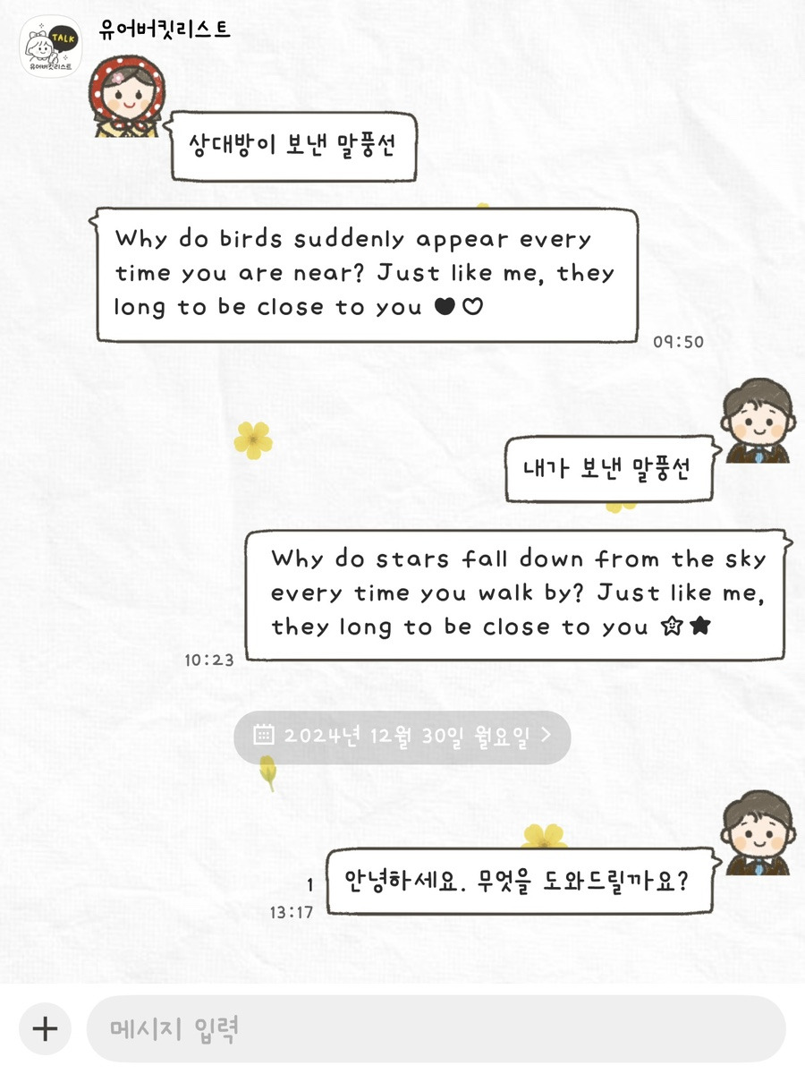 아무래도 채팅, 쇼핑 , 오픈톡 이런 단어가 분위기를 깨는 느낌이라서 제가 비슷한 단어로 대체했는데 제주도민 분이 보시기에 웃기실 수도 있숨당... ㅎㅎ 귀엽게 봐주쉐여~~~!