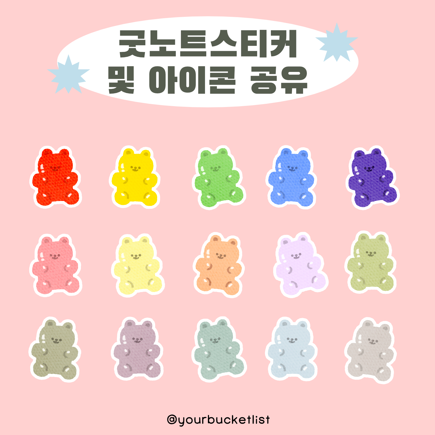 아래 링크를 누르시면 [굿노트 스티커 적용 방법] 게시글로 이동합니다. 굿노트 스티커 사용/설정 방법 제가 그린 손그림 캐릭터 아이콘들을 테마 제작할 때 한 번만 사용하기엔 아깝다는 생각이 들었어요! 이왕이면 블로그 꾸준하게 찾아주시는 분들께 공유하면 좋겠다 싶어서 이제 굿노트 스티커 yourbucketlist.co.kr [적용 예시] 맥북 사용하시는 분들 계시다면 맥북 폴더 이미지 변경하실 수 있어요! 1. 파란 기본 폴더 오른쪽 클릭 2. 정보 가져오기 3. 왼쪽 위 폴더 아이콘에다운 받은 아이콘 이미지 드래그 하기 4. 변경 완료 귀엽죠.. 다음에 또 귀여운 거 그려 올게용 ⚈̤᎑⚈̤ 재배포 및 2차 가공하여 사용하지 말아 주세요. 재배포 및 2차 가공하여 사용하지 말아 주세요. 재배포 및 2차 가..