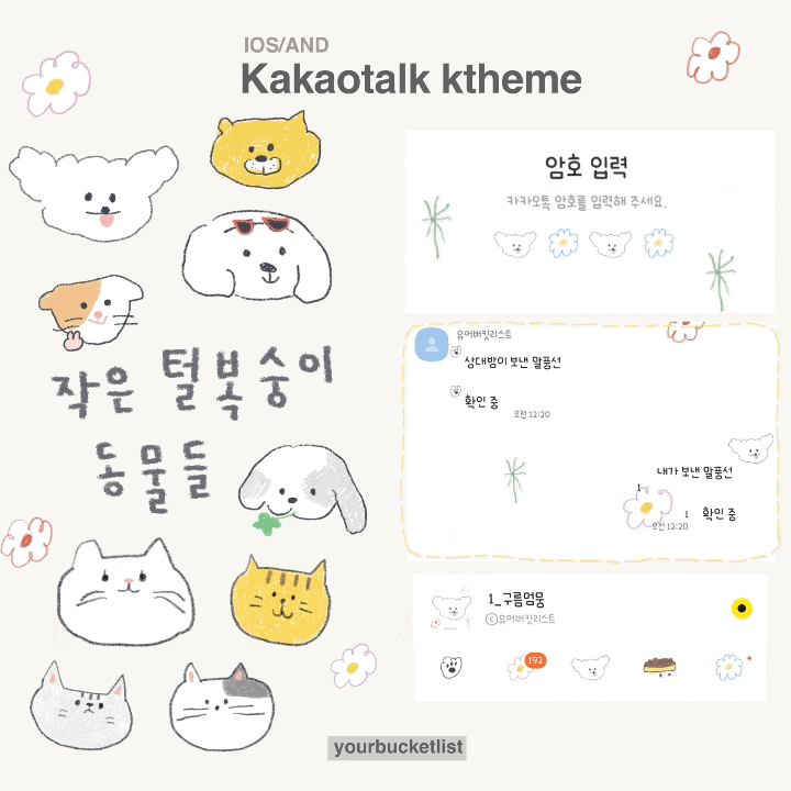 ɪᴏs.ᴀɴᴅ ᴋᴀᴋᴀᴏᴛᴀʟᴋ ᴋᴛʜᴇᴍᴇ𓈒𓏸 𓂂𓈒 𓂂 𓈒𓏸𝗙𝗼𝗻𝘁 [유어버킷리스트]블로그에서 ttf 파일로 구매 가능합니다.  - - - - - - - - - ꒰ ♡ ꒱ - - - - - - - - -안녕하세요! 인스타그램을 통해 어떤 테마를 원하는지 물어본 적이 있는데그 중 [벚꽃에 표정 있는 귀염뽀짝한 카톡 테마] 원하신다고 남겨주신 분이 계셨어요. 🙂 벚꽃에 표정을 그려넣기가 생각보다...예쁘게 그려지지가 않아서 다른 꽃들도 그려보고 동물도 대충 그려보다가 지금 공유하는 테마가 완성되었습니다. 실제로 적용해보시면 훨씬 귀여우니보너스 테마까지 알차게 공유 받아보세요.💛4월의 테마도 마음에 드시길 바랍니다!- - - - - - - - - ꒰ ♡ ꒱ - - - - - - - -..