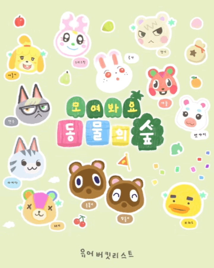 오랜만입니다 . . 11월 인스타그램 스토리에서 모동숲 친구들물어봤었는데 답변이 가장 많았던 친구들과비슷한 친구들끼리 묶어서 테마 만들었어요! 아기자기하게 만들고 싶어서말풍선 그림도 작게, 하단탭 아이콘도 작게 설정했어요. 모동숲 하셨던 분들 안 하셨던 분들모두 마음에 드시는 테마가 되었음 좋겠습니다🍃🏠 테마 적용 폰트 유어버킷리스트 ➊ , 🅓 그린[심플] , [여울이]   ➋ , 🅖 그레이[심플] , [콩돌밤돌][콩돌밤돌] 암호창은 깃발-벨주머니 반복입니다.   🅐 , 🅒 브라운[쭈니] , [리처드]   🅑 옐로우[애플+뽀야미]   🅔 핑크[크리스틴+루나]   🅕 블루[사이다+잭슨]   𝐁𝐎𝐍𝐔𝐒 베이지[패치]     ① 하단탭 : 나무 흔들면 떨어지는 과일/열매② 암호입력 :..